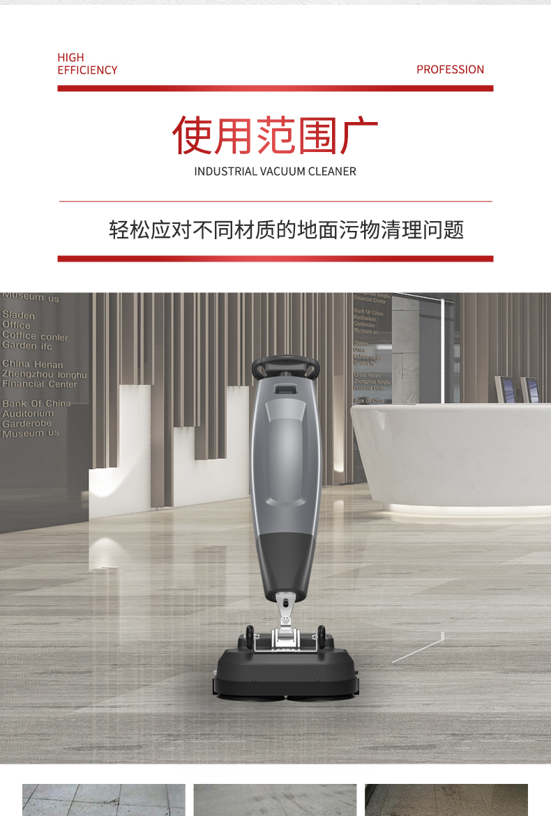 揚(yáng)子酒店式洗地機(jī)YZ-X430機(jī)身小巧輕便,可輕松轉(zhuǎn)移,無懼門檻、樓梯、臺(tái)階。清潔范圍更廣泛。機(jī)身設(shè)計(jì)為旋轉(zhuǎn)活動(dòng)結(jié)構(gòu),使用時(shí)可自由旋轉(zhuǎn),讓清潔更輕松,讓污漬無處可逃。輕松應(yīng)對(duì)墻角、床底、桌底等細(xì)小角落。