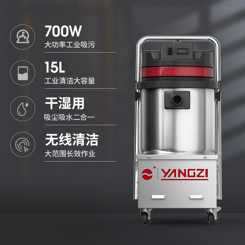 揚子C1/700W工業(yè)吸塵器適用場景廣泛干濕兩用,多重過濾遠離二次污染,雙電機散熱吸力更持久。